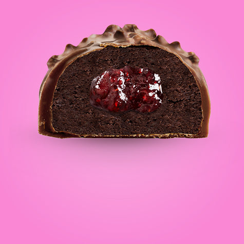 En mjuk kärna med intensiv jordgubbssmak och fyllig brownie –